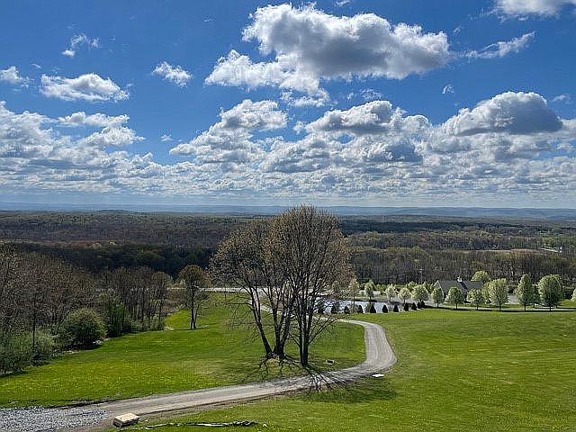 Stucco Farmhouse with stunning panoramic vista & pond views on 4 park-like acres in the Minisink Valley School District - 2 Master Suites (1st & 2nd floor) with tiled Cambria seated Brizzo rainfall showers, wrap around Trex porch and upper viewing deck off master suite and sitting room with vaulted ceiling, custom solid maple glazed Waypoint gourmet kitchen with Cambria Quartz countertop and center island, 9 ft ceilings on main floor, 10ft in basement and 2 car garage. Recessed lighting and no squeak hardwood floors throughout. Spray foam insulation and upgraded sheetrock for added soundproofing and maximum heating and cooling efficiency. Every detail has been upgraded in this home, please inquire for a full list. Still time to choose floor stain and paint colors. Excellent commuter location
