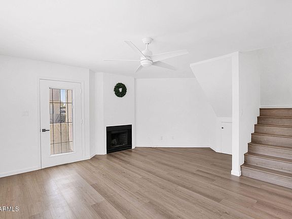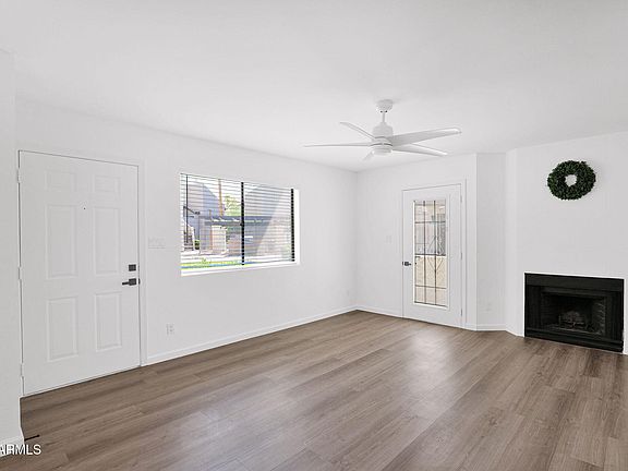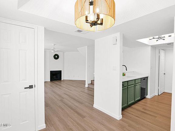 Welcome to this beautifully renovated 2 bed 2.5 bath townhome boasting over 1,100 sqft of living space. This exceptional property features a modern kitchen complete with stylish green cabinetry and elegant quartz countertops. Recent upgrades include new vinyl plank flooring throughout, updated lighting and fixtures, refreshed bathrooms and newer AC. A unique feature is the inclusion of 2 primary bedrooms each with their own en-suite. Large primary walk-in closet with double sinks. A convenient half bathroom is located on the lower level. The back patio provides an ideal setting for outdoor relaxation. The property's location is unsurpassed, offering easy access to major freeways, and within walking distance to Sloan Park and Cubs Spring Training Stadium. A vibrant array of dining and shopping options are within walking distance, with Tempe Marketplace and Tempe Town Lake just minutes away. Come experience the charm and convenience of this remarkable townhome.