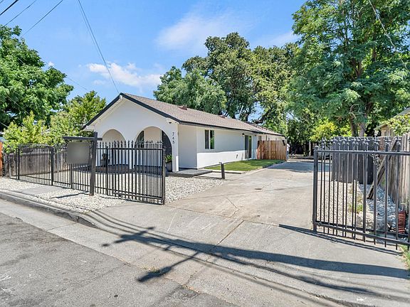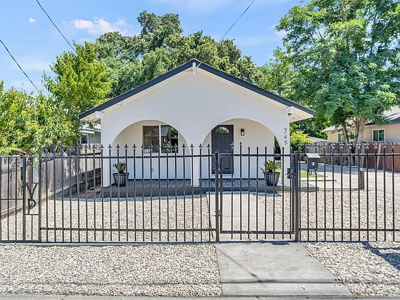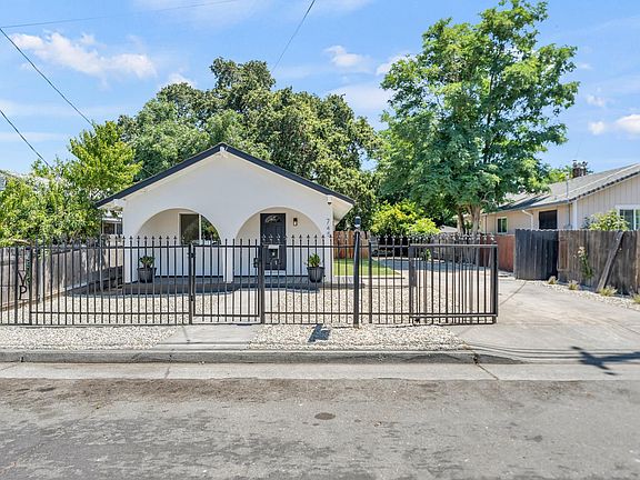 Welcome to this West Sacramento Spanish-style beauty, tastefully remodeled with modern finishes & luxury living in mind. This spacious 3 bed, 2 full bath home sits on a spacious lot w/ an expanded driveway. The kitchen has been redesigned with dark cherry custom cabinets, rich white quartz counters, & a classic white subway tile backsplash. Appointed with a suite of stainless steel appliances including a gas range & refrigerator, perfectly contrasted with a gold faucet, matching gold pendants, & gold cabinet hardware. The expansive great room offers endless possibilities to arrange formal dining & living spaces. Both bathrooms feature tiled shower stalls & stylish floating vanities. The generous primary suite includes two large closets with flexible storage options. Fully fenced for privacy, the oversized driveway fits RVs & extra parking. The large backyard features mature fruit trees & ample space to grow. Additional updates include plumbing, electrical, smooth imperfect texture, stucco exterior, dual-pane windows, HVAC, water heater, doors & hardware, LED light fixtures, dimmable recessed lights, AC vents, wood plank flooring, & low-maintenance, water-saving landscaping. Located just blocks to all your needs at Ikea Court, HWY Access & minutes to Downtown.
