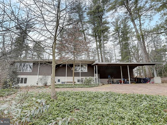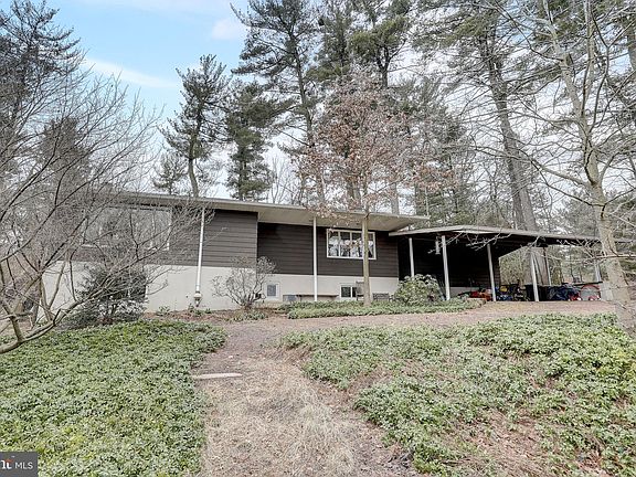 This Mid-Century raised ranch home overlooking the Wissahickon Creek was designed in 1960 by Robert Linder (co-founder of Cope-Linder Architects) as his own personal residence, the house is placed far back on its 2.5+ acre lot, surrounded by stately shade trees & enhanced with specimen flowering trees, perennials & shrubs. The circular driveway of crushed red gravel is lined with perennials & other plantings that provides 4 seasons of blooms from the hellebores & Witch Hazel in February to coneflowers & daisies in the Fall. You approach this warm and inviting home by the 2-car carport (with large, enclosed storage area) to a covered walkway. Once through the entry door, you get a glimpse of the open-plan concept upstairs & how the house is sited to get tons of natural light. The great room upstairs provides for living & dining in one space with a wood-burning fireplace that has lovely Mercer tile inserts. As you near the kitchen, find the back-door access to the rear deck, fenced yard and dining pavilion. The galley kitchen has a corner built-in breakfast table, granite counters, mercer tiles, an abundance of hickory cabinets & a large walk-in pantry with a chest freezer & 2nd sink. Tucked off the main living area is the spacious powder room & the laundry is right next door to the primary suite. The entire rest of this floor contains the primary bedroom (with a vaulted & beamed ceiling) & its en-suite bath. Moving onto the lower level (a perfect floor plan for visiting guests and family) there are two generous sized bedrooms, a full hall bathroom & a substantial family room. The family room is the same size as the living/dining area above, has the 2nd fireplace (propane) and a large, sliding glass door access to the side yard. It's a comfortable living space that is ideally suited for those who want one floor living (granted, there are stairs) with extra room for company. There are paths that meander through the property. You can easily access the trail head to the Wissahickon Valley Watershed leading to over 200 acres of walking trails at the Gwynedd Wildlife Preserve. You feel like you are miles away from civilization, yet you are within 10 minutes of everything that you could need for daily living (shopping, dining, public transportation). FOR GPS directions USE 745 W Walnut St, North Wales Pa 19454
