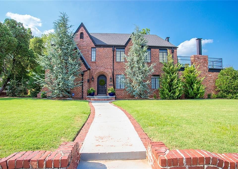Spectacular historic home in Lincoln Terrace.The 2015-16 complete remodel ranks among the most exquisite historic remodels done in OKC historics. The tudor revival home is a 3 bed 2 full and 2 half baths. Arched door ways, abundant natural light, 2 masters up, either a bed down or stunning office or 2nd living complete w/wood burning fireplace & wall of windows open to the adjacent park. Chef's kitchen is magnificent w/custom cabinetry, granite, commercial type appliances, above range pot filler, stainless prep table & stools & refrig to stay. The dining rm is framed by an enormous crystal chandelier. A butler's pantry provides storage & a small desk area. The primary master has a rooftop outside sitting area as well as an en-suite shower/claw footed soaking tub bath. The 2nd Master has a full bath & large walkin closet. The 3rd bed has a exterior & interior entrance. Garage is attached w/breezeway access to the kitchen. Large deck & historic brick fence. Gated driveway.