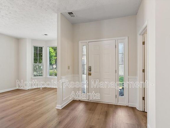 Up for lease is a well-maintained home in the South Fulton area. This brick front 2 story home features fresh paint, hard floorings, beautiful lighting and lots of space. The kitchen is fully equipped with stainless steel appliances, large cabinets, plenty of counters, and a separate breakfast area. As you enter the foyer, you are greeted by a large two story family room which features a fireplace, which adds a beautiful touch to this space. The rest of the 1st level features a separate dining room, and a powder room for guests. The 2nd floor has spacious secondary bedrooms and a full hall bath. The large owner's suite features a large bedroom which leads in a spacious bathroom which has a garden tub and separate shower. The home also has a big two car garage and a large fenced private backyard perfect for your morning coffee or family gatherings. Come view this home today!