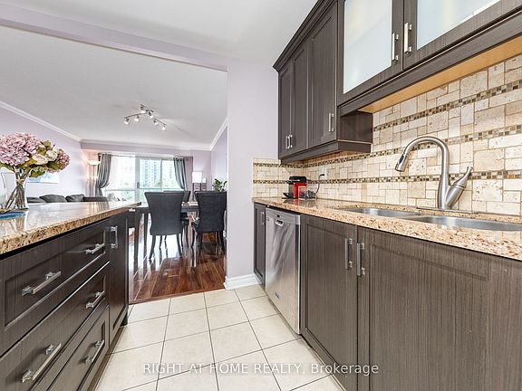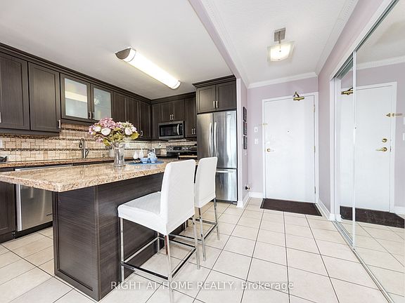 Quiet Boutique Condo In Prime Thornhill Area. This 1,110 SF, Spacious 2 Split Bedroom 2 Bath Unit Features Open Concept, Perfect Layout. Gourmet Kitchen With Huge Granite Centre Island And Countertop, Ample Storage. Brand New Washer/Dryer In 2025. Both Bedrooms Have Walk-In Closets And South Facing Large Windows. Maintenance Fee Include All Utilities Plus High End Package Cable Tv And Internet. Well Managed Building With Gym, Party Room, Sauna And Visitor Parkings. Vivrant Atmosphere With Everything You Need Such As Public Transit, Viva Terminal, Library, Parks And Schools. Promenade Mall, Walmart, Winners, No-Frills, Restaurants, Too Many To List.