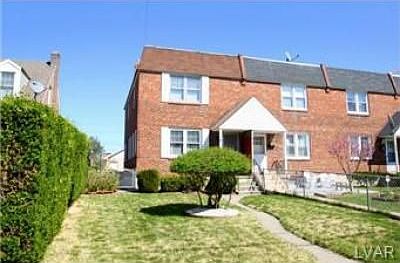 Very well kept, solidly built all brick 3 bedroom 1 bath end row home. Spacious living room opens up to Dining room Both rooms have beautiful parquet hardwood floors! Hardwood floors through-out. Eat in Kitchen. All three bedrooms have ceiling fans. Full Bath features a skylight that opens. Full basement with Bilco door, and a .25 bath(easily transformed to full or half bath! Nicely landscaped, deep lot including fenced in backyard perfect for upcoming barbeques! Oversized detached garage with off street parking. Wonderful location between Allentown and Bethlehem. Very Convenient to shopping, transportation routes, schools(Ritter Elementary is right across the street!), etc.