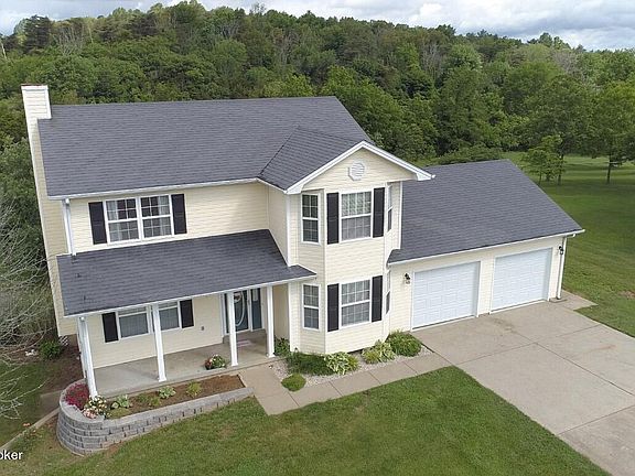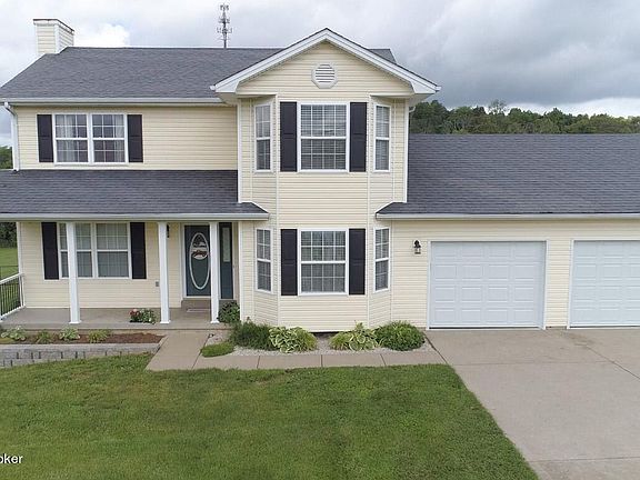 Very nice home on 0.825 lot. Large living room with gas log fireplace, large dining room, nice kitchen with ample cabinets. Second floor features a large primary bedroom suite with recessed ceiling, plus 2 nice sized bedrooms and a full bath - lots of closet space. Huge back yard partially fenced for fur babies. Deck, walk-out basement with patio, large covered front porch. Two car attached garage with brand new garage doors. Home being sold as - no repairs other than appraisal required.