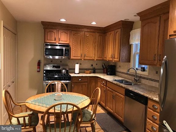 Well cared for 3 Bedroom Cape Cod. Backs to parkland. Eat in kitchen with a pantry, has been updated. Large Living room music room with hardwood floors. Dining room, roomy for additional guests, hardwood floors. Family room with access to back yard. (no hardwood under carpeting). Half bath remodeled. First level Primary bedroom with updated bath and French doors, with an electric awning over them, lead to the deck. Second level has a full bath and two bedrooms, each with an additional sitting area. The basement has been finished as a craft play room area. There is also a large storage room area. The one car garage is oversized, and fits not only a car, but many tools, and a lawn tractor. The deck is made out of IPE wood, which is one of the strongest woods you can buy. It resembles Mahogany and can last over 50 years. Flood Insurance is not required, seller has an elevation certificate.