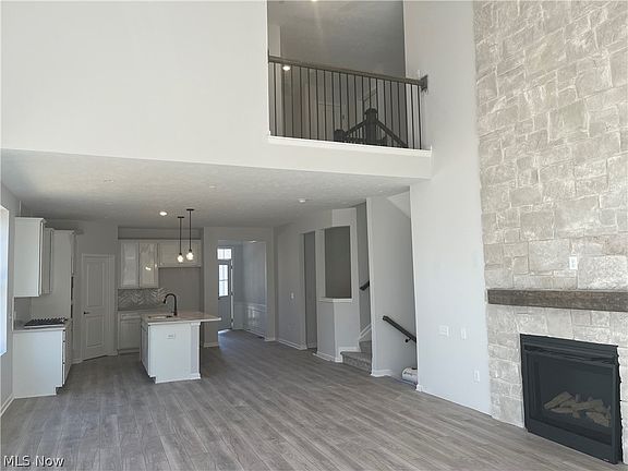 This eclectic Linwood floorplan boasts high-end finishes and modern designs creating an inviting and welcoming home. Upon entering, you'll be pleased by the bright and airy first floor! The chef's kitchen is a highlight, offering soft-close cabinets & drawers, stainless-steel appliances, an oversized quartz Island, and a separate dining space seamlessly flowing into the family room, which features a stunning light from the enormous windows that offer a gorgeous view to your private wooded back yard that is in a cul-de-sac! Downstairs, you will have an enormous game room with garden view windows and a fireplace! Upstairs, the owner’s suite is a true retreat, complete with a huge walk-in and a luxe bathroom featuring dual sinks and an elegant tile walk-in shower with a frameless glass door. Also upstairs, are two additional bedrooms that each have their own walk-in closet. The convenience of a second-floor laundry room adds an extra layer of functionality. You also have additional space in the basement that includes a full plumbing rough-in and an Egress window should you want to add a 4th bedroom with bathroom! Renaissance Park at Geauga Lake is also located in the highly acclaimed Aurora School District!
