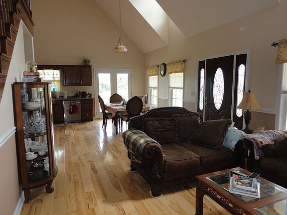 This is a beautiful modern 5 yr old farmhouse with an 8ft wide wrap-around covered porch set on 92 acres. Adorned with vinyl siding, posts and railings for easy maintenance. Entering the front door you'll walk into a large open concept liing room, dining room and kitchen with cathedral ceilings, beautiful hickory wood floors and a gas-burning fireplace. The kitchen boasts stainless steel appliances and a large walk-in pantry. The dining area has french doors leading onto the porch. A short hallway leads to a 1/2 bath for guests and the master bedroom. The master bedroom is spacious including a bay window accompanied by a window seat. There are his & her closets in the walk thru to master bath. Also a double sink, a jacuzzi tub and a huge walk in shower with double shower heads and custom tile. In the living room there are stairs to the second floor where you will find a full bath, large linen closet and 2 more bedrooms with plenty of closet space. The fully finished basement adds an extra 1,280sqft of living space. Here you will find a 10'x12' concrete safe room. There is also a 20'x15' recreation room with an entire wall of closet/storage are. There is also a 1/2 bath and finished 30'x15' room plus utility room, with additional closet space. An exit door leads to a concrete ramp for easy access outside. The house has beautiful views of a plantation sized lawn and fenced fields. There is a large workshop with added enclosed 20'x80' covered lean-to storage area attached. A new big red barn is 40'x80' with storage rests adjacent to the fenced-in pastures with built-in water systems. Half of this property is in pasture and the other half is located in the hard woods with 2 food plots. A creek flows through the property supplemented with a pond. There are many different kinds of fruit trees. Wildlife abounds here. It is peaceful and quiet with local deer and turkey visiting your front yard. Make an appointment for a private showing of this farm in a beautiful rural corner of Tennessee.