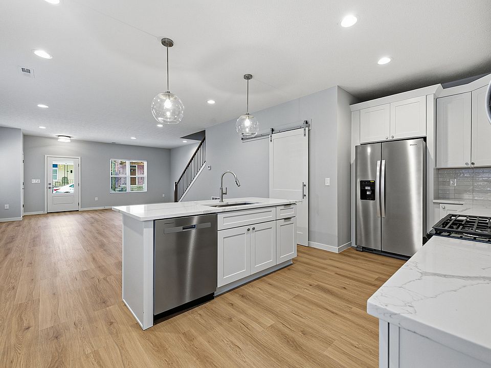Sleek quartz countertopsBright and inviting spaceGenerous first-floor storageOpen-concept main floorWhite shaker cabinetsOff-site parkingDedicated laundry room