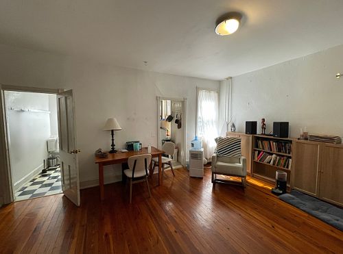 2nd floor, light-filled, one-bedroom apartment available on Fabric Row with lots of charm and character. Spacious living room with beautiful hardwood floors and exposed brick, eat-in kitchen with washer and dryer, generous sized bedroom with a large bay window and a full-tile bath. Gas is included in monthly rent. Tenant is responsible for electric. Landlord will pay for gas and cold water. No more than 2 pets on the property.