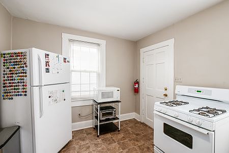 This beautiful and comfy home for rent is available for July 1 move-in. It is located in the heart of German Village. This is an amazing 2 bedroom single family home with one and half bathrooms. It has a newly remodeled large Kitchen and Bath with quartz countertops and subway tile. The first floor has refinished wood flooring in the living room and den/optional bedroom. There is a classic "Mad Men" minibar in the den. Full basement with 2 rooms with washer /dryer. Current tenant uses one room for a gym. Plenty of extra storage cabinets too. Beautiful , large brick outdoor patio with a fire pit. Spacious side yard totally enclosed. Plenty of on street parking in front of house. Renter pays the gas and electric in own name. Tenant pays $30 per tenant to owner monthly for water.