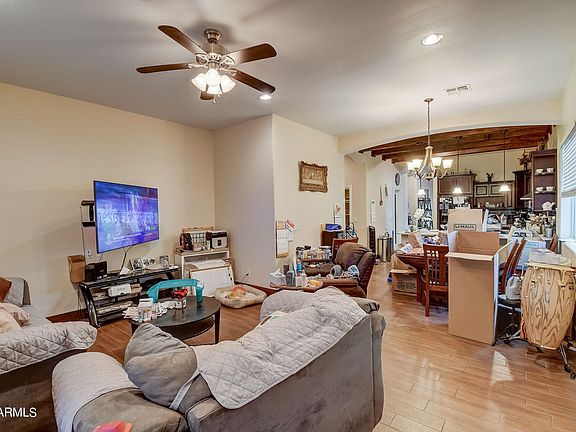 Beautiful custom home featuring 4 bedrooms & 3 baths in the main house, plus a mother-in-law suite with its own entrance, bathroom, & washer/dryer area! Gorgeous kitchen adorned with wood beams across the ceiling. 2 walk-in pantries, 5 burner gas range, granite counters, under-mounted sink, & extensive breakfast bar. The master suite features a large walk-in closet. Inside laundry area with wash-basin. Granite counters in all bathrooms & wood-look tile through the entire home. High ceilings & abundant storage space enhances this open-concept home. Backyard features a large Ramada with attached BBQ bar that has granite counters, custom tile work & outdoor sink for all your entertaining dreams. Outside storage room.