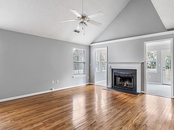 Move in ready and brand new roof! Step inside to spacious living room with vaulted ceiling and fireplace. New carpet in the cozy sunroom and hardwood floors everywhere downstairs. Fresh paint throughout. Kitchen has white cabinets and brand new stainless appliances. Dining space with wainscoting. Upstairs is the master suite with double tray ceiling, 2 walk in closets, and additional attic eave storage access. Its en suite bath features a dual sink vanity, soaking tub and separate shower. Two upstairs guest bedrooms share hall bath. Large laundry room/mudroom connects to attached 2 car garage with a utility sink. Private lot conveniently located minutes from downtown. Well landscaped, fully fenced yard has a generous patio and 2 additional concrete pads for firepit or boat storage!