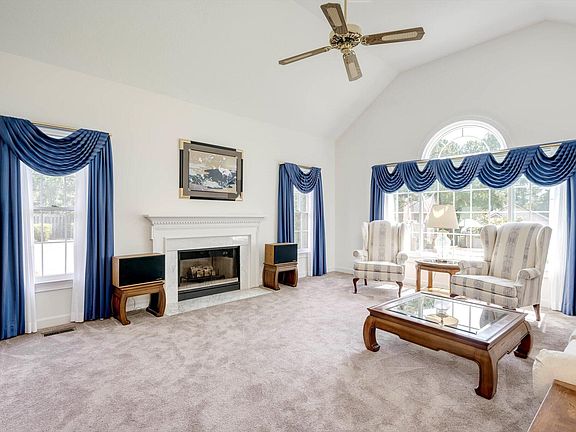 Marble-surround fireplaceSoaring ceilingsDining areaGenerous bathWalk-in showerBuilt-in wet barCorian counters