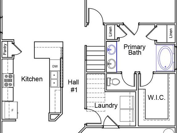 This Rutherford - five bedrooms with the primary on the main level! When you enter the home you will be greeted with a great open concept main floor with luxury vinyl plank flooring stretched throughout the main living areas. The home opens with the eat-in kitchen area perfect for a large table. Just off the eat-in is the modern kitchen including stainless steel appliances, white cabinetry, granite countertops, pantry and more! The great room is just off the kitchen and is anchored by a gas log fireplace. The main floor primary suite has a soaking tub, large walk-in closet, linen closets, ceiling fan, and separate water closet. Upstairs are four additional bedrooms and two full baths. Just at the top of the stairs is an open loft area that makes a great second living room. Outside features a rear patio great for entertaining, fully sodded yard, and front yard irrigation. Call today to set up a tour of this floorplan!