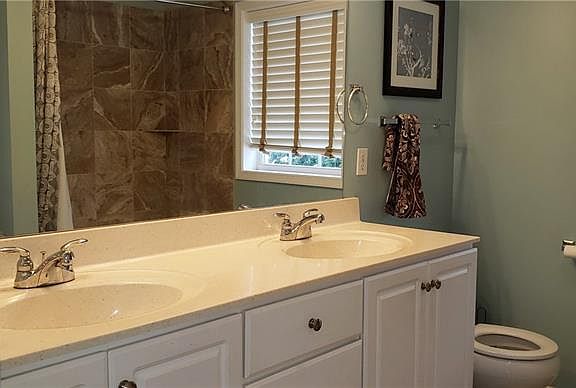 This house is much bigger than it looks. Excellent curb appeal. Open floor plan with beautiful hardwood floors. Giant living room with gas/log fire place leads right to kitchen with granite countertops. 3 season room upper and lower. Walk-out finished basement with gas/log fireplace, bedroom, full bath, dog washing shower, second laundry room, and second kitchen also with granite countertops. Community swimming pool and recreation center is provided for use by all residents in this planned community.