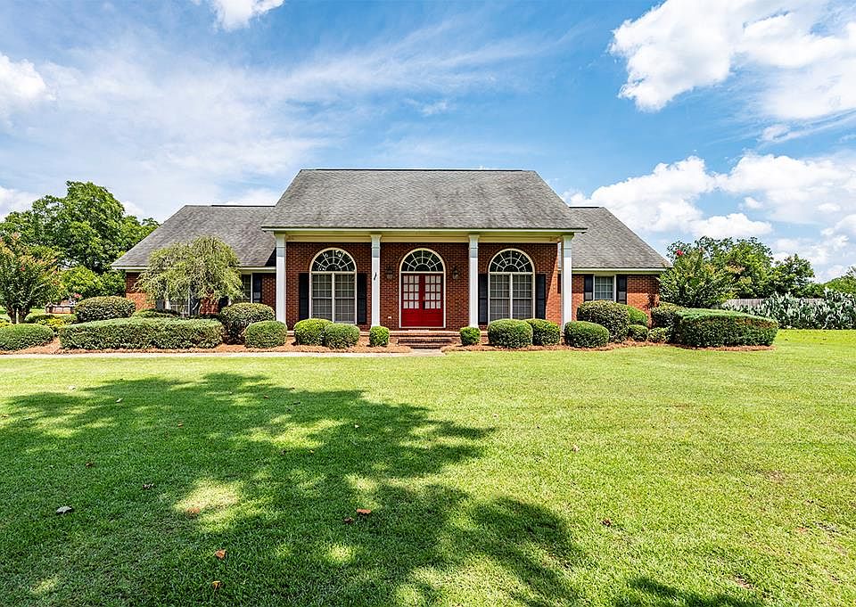 *** BACK AVAILABLE AT NO FAULT OF THE SELLER! *** GORGEOUS ALL BRICK HOME – LARGE PALLADIUM WINDOWS – WEST LEE COUNTY LOCATION! This home features 2,400+ sq ft of living space, 3 bedrooms, 2 baths + an office + a sunroom! This home offers an amazing OPEN floor plan, tall 14 ft ceilings, windows galore for tons of natural lighting and plenty of space for everyone! Enter through the double front doors into an inviting foyer, office space to the right and formal dining to the left. The foyer opens into the very spacious kitchen/great room with built-in's a gas log fireplace, beautiful kitchen cabinets, granite countertops, stainless appliances including a gas range and an eat-in breakfast nook! The primary suite is very private and spacious. The primary bath has a double vanity and an oversized tiled shower with bench seating! The additional two bedrooms are located on the opposite side of the home, both spacious with nice closet storage space with easy hall bath access. Just off the great room is a sunroom which allows for amazing indoor/outdoor space! Updates/upgrades include: easy to care for LVP hardwood floors throughout, updated roof (2011), updated HVAC unit (2020), updated kitchen and master bath and so much more! Large fenced backyard (NOTE: The property does go way beyond the fenced in area)!!! This is a very well kept home, excellent location and all that's missing is YOU! Call today to setup your private tour!