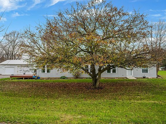 Remodeled ranch home on 5 acres! The updated kitchen offers quartz countertops, tile backsplash, center island and plenty of cabinet space. Enjoy your morning cup of coffee in the breakfast area with access to the deck and the vaulted family room. The primary suite features an attached private bathroom and walk-in closet. 2 additional bedrooms and an updated full bathroom complete with new tile, vanity and lighting. Enjoy outdoor living from the deck overlooking the very spacious backyard! This home is complete with a 24 x 32 outbuilding with electricity and a 2-car attached garage. Recent updates: Septic '23, HVAC '23