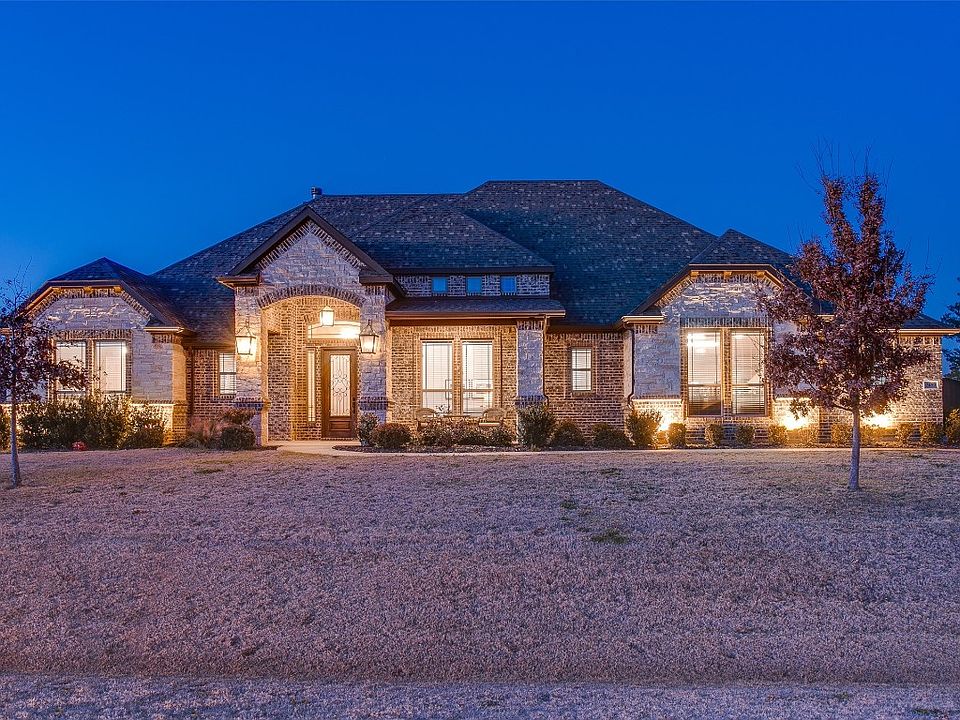Are you longing to be closer to nature and away from the hustle and bustle of city life? Just 30 minutes from Downtown Dallas, enjoy fresh country air, and the serenity that comes with space to breathe. This exceptional one level custom home sits on a manicured one-acre estate, and offers luxury living, both inside and out. Enter to a soothing color palette, lofty coffered ceilings, hand-scraped hardwood floors, and a wonderful open concept layout with zero wasted space. The kitchen is a chef’s dream with oversized island, double ovens, sleek stone counters, and ceiling-height Knotty Alder cabinetry. The living room is anchored by a gorgeous stone fireplace, and the dining has a beautiful space for service. Split bedroom configuration affords privacy for all, with a generous primary retreat offering a spa-bath with dual vanities, oversized shower & bath, plus custom closet. Head outside to an entertainer’s delight with enormous yard, 8’ privacy fence, outdoor kitchen and stunning pool!