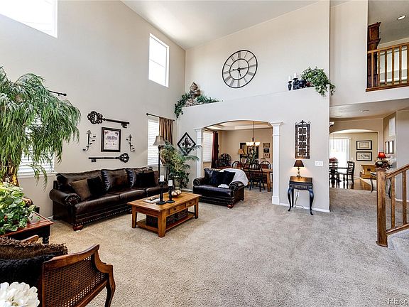 Upgrades galore throughout this popular Lennox model by DR Horton featuring 5 bedrooms, 4 full baths, plus a 1/2 bath on main level*Walk into 20' foot ceilings, and an open floor plan where the rooms flow nicely*Open gourmet kitchen is absolutely amazing! Large island, Stainless steel appliances all included, gas cook top with pot filler, range hood, double ovens, dishwasher, and microwave*Kitchen opens to eat-in area and family room with gas fireplace*Main level guest suite with full attached bathroom, could be used as office as well*Mud room off of 3 car garage*Upstairs features a large loft*Huge primary suite with sitting area and bathroom with double vanities and soaking tub, free standing shower and spacious walk-in closet*Upper level laundry room*3 additional upper level bedrooms*Jack and Jill full bath with double sinks and another full bath with double sinks*Patio off of kitchen area perfect for entertaining*Full unfinished basement with bathroom rough in awaiting your touches/finishes*Newer roof*2 HVAC systems and 2 A/C units*Tons of storage throughout with numerous linen closets*Neighborhood playground is fantastic*Easy access to trails nearby and Adams County Regional Park*