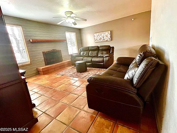 Don't miss this fantastic home located in great area on Tucson's East side! Great 3 bedroom 2 bath with large, bright eat-in kitchen! All appliances stay. Lovely fireplace in the living room, Saltillo tile in living areas and newer tile flooring in hall and bedrooms. Lots of aesthetic touches, updating and new paint! Loads of storage space in double carport workshop spaces, large storage shed in back yard, Newer A/C and water heater. Plenty of room for RV! Beautiful, big back yard with extended covered patio!