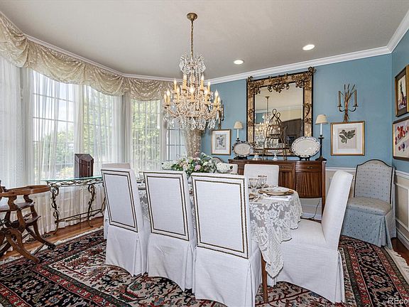 DOWNSIZING after 15 years of an empty nest! Three floors of fabulous, usable living space, from the covered front porch to the heavily landscaped back lawn. Enter the soaring foyer, centered with a sweeping curved staircase, flanked by living (custom fireplace) and dining rooms- all hardwood, very spacious study-enough room for two people to work~ much loved family room w high vaulted ceilings, custom oversized mantle, opening to the informal dining area and kitchen-Dacor double oven and 6 burner Wolf Range. Kitchen pantry is huge and designed for food/ equipment storage!Butler's Pantry provides add'l storage and character. Beautiful, newer granite throughout all, incl the laundry room. Ascend to the Master Suite w sitting room featuring a double sided fireplace, an updated 5 piece bath and a closet that is SIZED beyond expectations! Bedroom #2 features an updated, en-suite bath w Carrera marble. Additional bedrooms share Jack and Jill Bath, each having individual sinks and walk in closets. Walk out basement features 5th bedroom, a flex space-workout room/2nd office/playroom, large media room w kitchen/dining areas and large game room (pool table included) and wine storage. Large storage w existing shelving included. Step out to the expanded patio, partially covered by a Trex deck, w multiple seating areas, including a gas Restoration fire pit and outdoor kitchen--gas line installed to both. An abundance of mature perennials and trees provide beauty and privacy. Flagstone paths lead to different parts of this large lot, including a garden plot, two-story playhouse with storage, an upper terrace. Enjoy the privacy of not backing up to anyone, and not having to drive/bus your children to elementary school. In addition to Cherry Creek Creekside, Liberty and Grandview, Regis Jesuit High School is a nearby, very short, safe distance. Easy access to 470, DIA, medical. POOL AND TENNIS COURTS!