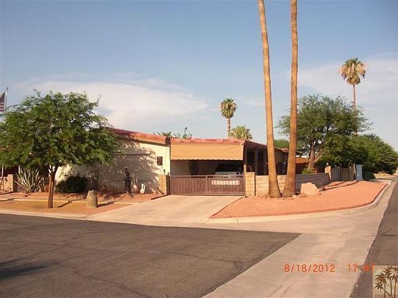 REDUCED! Outstanding Value! Stop the car!! This is the Desert Jewell you've been looking for. Located in desirable 55+ Gated community of Portola CC. Owner's lovingly upgraded every room, inside, outside, top and bottom. Attractive corner lot with artfully designed desert landscaping. Masonry fencing/Pet friendly rear yard. Stucco exterior, Spanish Tile look roofing. Beautiful view of San Jacinto Mtn. and just a few houses from the golf course. This manufactured home includes a Recorded 433A Foundation if bank funding is required. Inside features living room with dining area. Family room, kitchen with breakfast bar. 2 bedrooms, 2 baths, and separate laundry room. Lots of built in storage and sliding cabinet shelving. Upgraded windows-low e & dual pane. Updated A/C-Furnace, ducted evaporative cooler, Security doors, Phantom screen doors, Plantation shutters, Mirrored wardrobe doors, stainless steel sinks, remote control ceiling fans. The list goes on and on. Unfurnished.