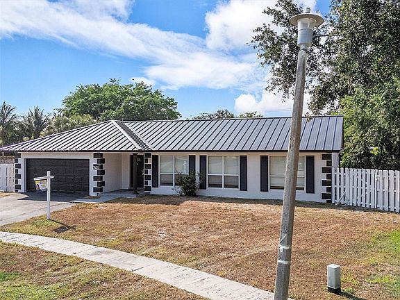 Great bright and airy large 4 bedroom 2 bathroom completely turn key home! Brand new metal roof! Home freshly painted! park boat or RV no hoa. Open layout concept Home features a refreshing pool situated on an oversized 20,000 square foot lot, surrounded by a fully fenced yard for ultimate privacy and space. Home is equipped with hurricane windows, ensuring your peace of mind and safety during stormy weather. Step inside and bask in the radiant glow of natural light dancing on the gleaming new tile floors, creating a warm and inviting atmosphere that envelops you in comfort. Your oversized new kitchen awaits, quartz countertops and top-of-the-line stainless steel appliances that elevate your culinary experience to new heights.Upgraded bathrooms with glass door shower in the master bedroom.