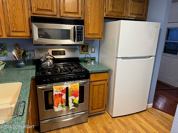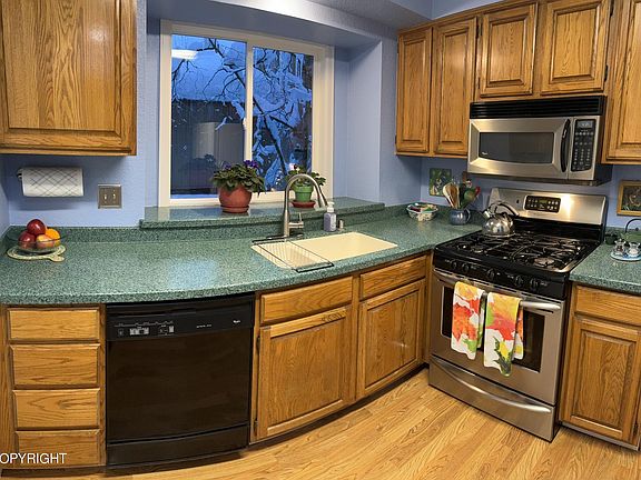 Well loved home full of desirable features. Vaulted living room ceilings with wood burning fireplace. Solid surface kitchen and bathroom counters. Spacious master bedroom with walk thru closet. Organizers in all bedroom closets. Energy rating upgrades include furnace, on demand water heater, and several new windows. Fenced back yard with extensive landscaping and large deck. Don't miss out.