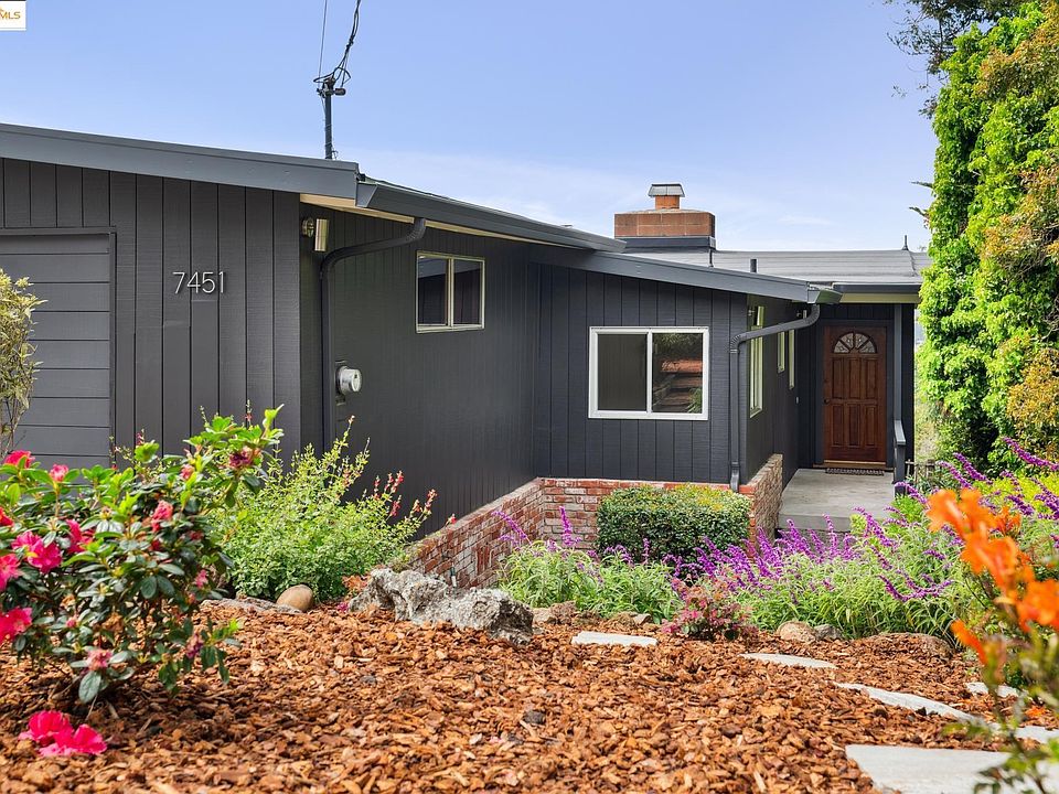 Built in 1962, this Mid-century gem in the El Cerrito hills offers great views and plenty of space! Just past the formal entry hall, the large living room and dining room, with vaulted, exposed beam ceiling, offer a wall of windows and a slider to the deck, highlighting expansive views of San Francisco, the Bay, bridges, and Mt. Tam. A fireplace that opens to both the living room and the family room on the other side creates a cozy ambiance in this open space. The kitchen, adjacent large breakfast room, and family room combine to offer a second open area for together time. The main level also features the primary bedroom, a full bath, and a second bedroom. Stairs down to the lower level lead to a second family room area, three additional bedrooms, a second full bath, a laundry room, and a workshop with a separate hobby room/office. The back door opens to a lower deck and stairs to the terraced backyard with a patio area. 2,476 sq ft* on a 6,210 sq ft* lot. Close to local schools, public transportation, El Cerrito Plaza, and BART. *Per public record.