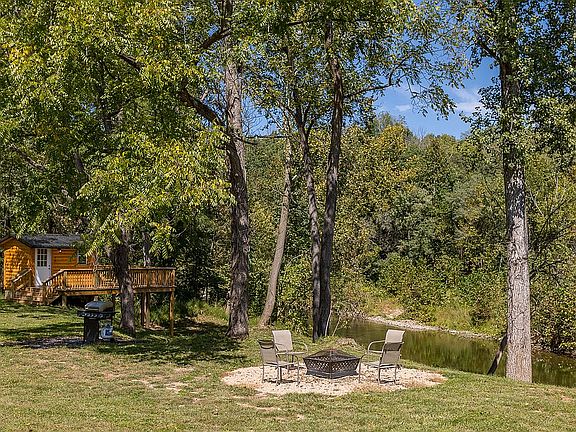 This cabin rests on the banks of the north fork of the Shenandoah River. The cabin is modern, yet cozy. Enjoy a huge master suite with a large walk-in closet and attached bathroom, plus lots of natural light from the window overlooking the river. The kitchen is equipped with stainless steel refrigerator/freezer, stove, dishwasher and microwave. The "river hut" has a large deck with outdoor bar seating and a hydraulic window that opens up to an amazing river view.