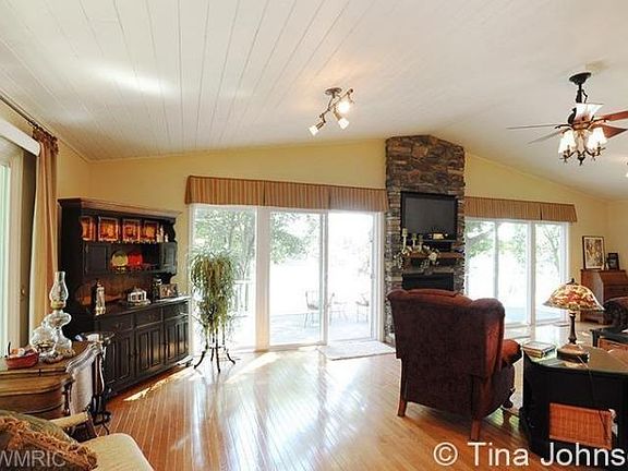 Call Tina Johnson today at 616-951-2095 for a private showing! Here is your chance to own this year round waterfront living home on Big Pine Island only 30 mins from downtown GR for under $400,000. This home has been elegantly remodeled from head to toe. Stunning kitchen with custom painted cabinets, grantie & SS appliances. Beautiful great room with stone fireplace, cathedral ceilings and stunning views of the lake with large patio doors to the deck perfect for morning coffee or watching amazin g sunset & sunrises. Main floor master bedroom has bamboo floors is spacious and features a full bath w/double sinks. Main floor also features laundry & half bath. The lower level walkout features a 2nd family room, 2 generous sized bedrooms, pellet stove & bath PLUS a second set of large patio doors for additional views of the lake.