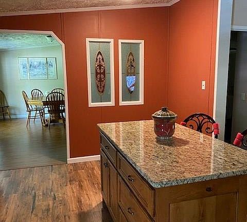- Interior Features: Window Treatments, Ceiling Fan(s), Drywall, Smoke Detector, Insulation, Master on Main, Laundry on Main, Wood Walls, Granite Counters, Kitchen Island