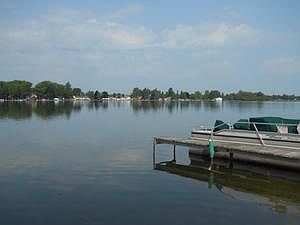 Year round home on all sports Cedar Lake. Three bedrooms, 2 baths with a wrap around composite deck and an additional bunk house for your extra guests. Safe sandy beach and swim area with seawall. Nice wooded lot. Many updates....a must see!!
