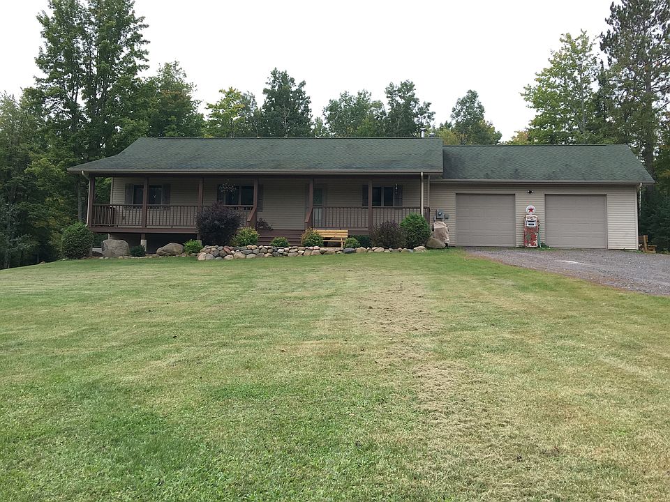 Ranch style stick built home located on private setting with 22.5 acres. Built in 2002 this home has an open concept eat-in kitchen and living room area with a beautiful slate wood burning fireplace. Kitchen has tons of storage with large pantry. Main floor also hosts 3 bedrooms and 1 full bathroom. Newly renovated large walk-out basement also has 1 bathroom, 1 full bath, laundry room, sauna and maintenance room. Heated attached 26 x 30 garage with attic storage, detached 30 x 50 garage with storage trusses above and 24 x 24 wood shed on property. Land has 3 enclosed deer stands with food plots and a sliding hill.