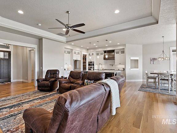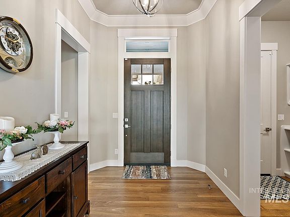Pristine custom Eagle home with RV garage! Single level home in Eagle’s exclusive Legacy community. This desirable 4 bedroom, 2.5 bath home. 4th bedroom can be used as an office. Gorgeous upgrades throughout such as hardwood floors, a full stone fireplace and coffered ceilings. A gourmet kitchen features Bosch appliances, granite counters, and a walk-in pantry. Relax in your spa-like master retreat soaking tub and large full tile shower. Hard to find large 44’ RV garage with epoxy flooring and 220V. Enjoy your private backyard with no rear neighbors and direct backyard access to the community walking path. Neighborhood amenities include stunning water features, 26-acre 3 hole golf course, tennis courts, swimming pools and walking paths. Don’t miss your chance to live in the heart of Eagle.