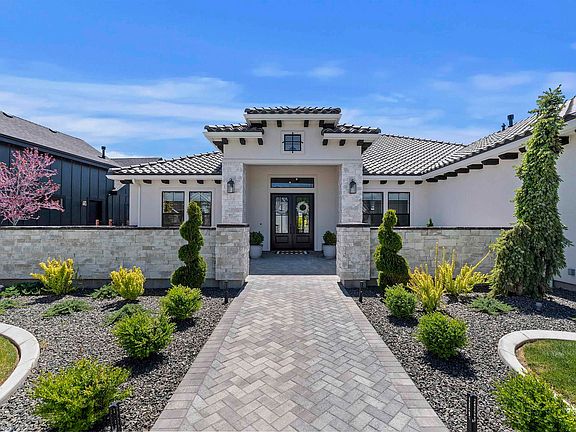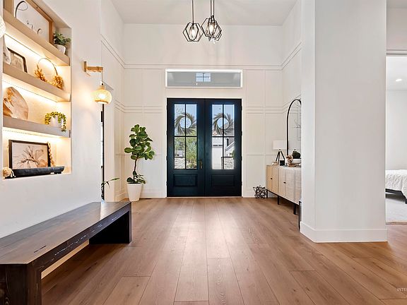Step into waterfront luxury with this stunning single-level home, seamlessly blending modern elegance with organic charm. Large open floor plan with sleek finishes and an abundance of natural light. From the waterfall counter top in the kitchen to the gorgeous primary bathroom retreat - you will be delighted with the attention to detail this custom home has in it. Split bedroom design with large bedrooms - (Jack and Jill), an office/den with custom made barn door and a custom designed bar/wine room are just the beginning to this amazing home. Bring the outside in with the large covered patio and seating area. Tons of room for an outside living room or grilling area. Stone pathway to your own private beach area and wood burning fire pit. This beautiful Legacy home is sure to impress.