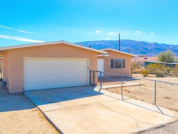 Charming corner home in a quiet area of 29 Palms. House has been maintained and shows pride of ownership. This home is located on a large corner lot near route 62 (29 Palms Hwy) with room to park an RV, desert toys or to expand. A spacious living room with tile flooring and a large window taking advantage of mountain and city views. Large dining area off the kitchen with tile flooring and a sliding glass door leading to the rear fenced backyard. 2 spacious bedrooms with a centrally located bathroom. The kitchen is bright with plenty of cabinet space. There is an attached double garage with plenty of space for storage. large lot size. Great starter or investment home being close proximity to base and Joshua Tree National Park. Some pictures have been virtually staged