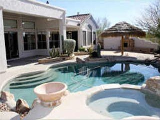 Great location!!!Beautiful Single-Level home on 3/4 Acre in N. Scottsdale subdivision Monterra. Incredible PRIVACY - Home backs to open area, The BACKYARD is a true OASIS- GREAT FOR ENTERTAINMENT!! Boulder Waterfall Feature on Pool, Spa, Outdoor Fireplace, Large ''Palapa'' (Palm Umbrella). 3 Bedrooms, PLUS OFFICE, PLUS HOBBY ROOM (4th garage bay turned into a multi-purpose room). Large master suite, formal dining and living room, 3.5 baths, 3 car garage w/ drive thru to backyard, Light & Bright Kitchen very open w/ island, Granite tile counter tops, floors have been upgraded to Travertine Tile, carpet in bedrooms. ***PRICED BELOW MARKET VALUE ***NOT A SHORT SALE OR REO ***