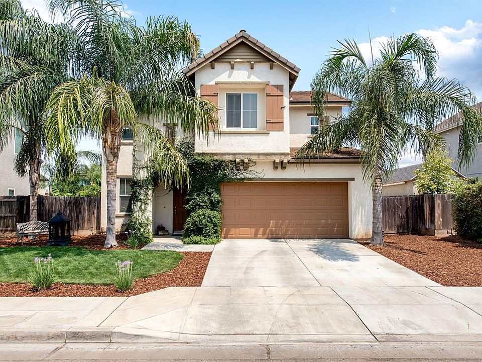 Located in the Clovis Unified School District is this gorgeous Mediterranean 3 bedroom and 2.5 bath home surrounded by mature palm trees, larger lot and larger side yard for possible RV or boat parking. Upon entry you will experience an open floor plan with stainless steel kitchen appliances, granite counter tops, darker maple color cabinets, large center island with seating and granite overlooking the living area. Upstairs you will enjoy all three bedrooms and laundry room for convenience. The beautiful master suite flows into a master bathroom with shower, soaking tub, double vanity dual sinks and large walk in closet. Enjoy your evenings and weekends in the immaculate backyard with covered patio, separate pergola, spa and children's playhouse with slide.
