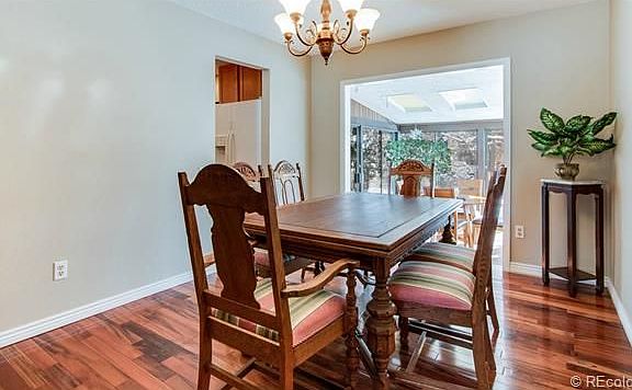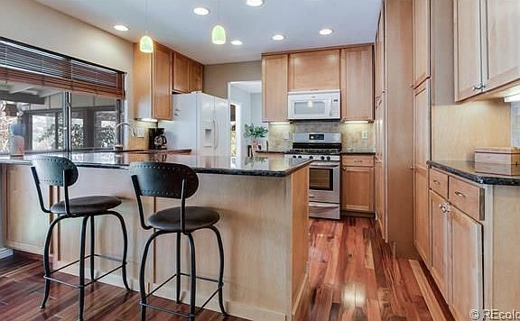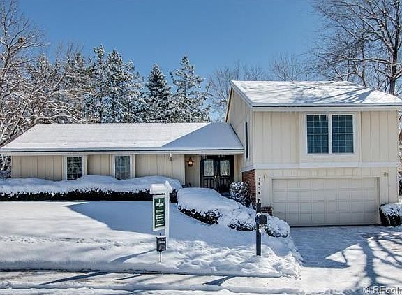 1/4 acre cul-de-sac lot with private flat back yard lined with trees. Large covered deck allows year around use. Home has a remodeled kitchen with new cabinets, appliances and granite counters. Newer hardwood floors throughout the main level. Open and bright with mountain views from great room. Enjoy the 2600+ square footage and the closeness of the Highline walking path, swimming pool, streets of Southglenn and Arapahoe high School.