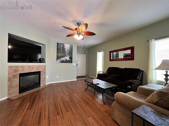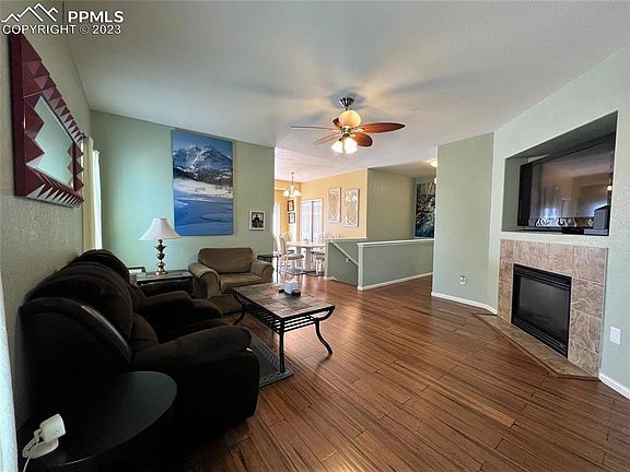 Well kept ranch home, with home theater & wet bar with keg is perfect for entertaining! This lovely main level living ranch home offers new carpet, 2 bedrooms, an office, 2 baths, & laundry on the main level. The master bed has an attached bath & walk-in closet. The spacious living room has a gas fireplace. Plenty of cabinet/counter space in the kitchen w large pantry for extra storage. The dining area walks out to the large deck overlooking the nicely landscaped backyard. If you are a sports fan, movie fan, or have always wanted a big screen, go down to the finished basement & settle into your favorite couch or recliner to watch your favorite movie or sports team in your very own home theater. During the game or movie, refreshments won't be too far away with the adjacent wet bar with small refrigerator, & a kegerator to serve your favorite beverage on tap. There is even room for a small table in the bar area. The basement also offers a second living room, then 2 spacious bedrooms with adjoining bath. You can enjoy the beautiful Colorado weather on your deck outside while grilling out this summer or cool off inside in the central A/C. If you enjoy the outdoors you can walk to one of the nearby parks or take a short walk or bike ride to nearby Cross Creek Regional Park with bike track, sports fields & a playground. 10 minutes to Ft Carson Gate 20.