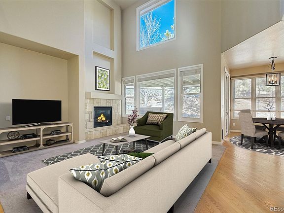 Fantastic Fairway Ridge home on a quiet cul-de-sac in The Pinery. 1 block from Bingham Lake, the Pinery Loop Trail, the Pinery Country Club, and Golf Course as well as Northeast Elementary School. A short walk or bike to Cherry Creek Trail. A stone walkway leads to the front formal entry foyer that opens to the living, dining rooms, and private office with french doors. Plenty of room in this 5 Bedroom ; 4 Bath home with 4170 Square Feet. Finished basement with an entertainment room. a beautiful floor-to-ceiling fireplace, wet bar, counter, 2 large bedrooms, a bathroom with steam shower, plus plenty of storage space. There are 3 bedrooms on the top floor including the primary with a large bathroom, walk-in shower, 2 vanities, and walk-in closet. 2 other bedrooms share a full bath. Large eat-in kitchen with hardwood flooring, center island breakfast bar, stainless steel appliances, wine cooler, and refrigerator. Ample-sized fenced rear yard with covered patio, stone flooring, fireplace, and gas line. In addition, there is also a flat, raised area perfect for hanging out or a trampoline, swing, or playset. Flooring is hardwood, carpeting, and tile. White slat blinds used throughout. The washer, dryer, and refrigerator are included. RTD station is a block away next to NE Elementary. Photos of rooms that are furnished were virtually staged. The buyer will receive a 1 year Home Warranty plan after the close of escrow.