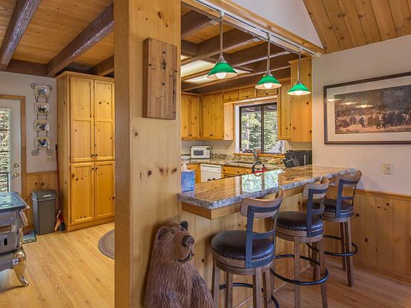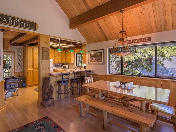 The Tintle/Hansen Home is a family and pet-friendly vacation home nestled into the woods. It has everything to make for a comfortable, memorable stay. The house backs to Royal Gorge xc ski trails and National Forest, and offers plenty of privacy from nearby homes. It's perfect for two families or one large group with two sitting areas, a large table for dining, and a big open kitchen. A well maintained home with updates and new features. The 4 Bedroom, 2 bathroom home sleeps 12 ppl, 1 King, 1 Qn, 1 Dbl , 5 twins, and features forced air heat, wood burning stove, fully equipped kitchen, washer/dryer, satellite TV and internet. Fully furnished with towels & linens. 3 hours from the Bay Area, easy access off I-80, just 10 minutes to Sugar Bowl/ Boreal and other world class ski resorts, 20 minutes to Truckee. Available for 2 - 5 months during the '24/'25 ski season. Monthly rent includes water and sewer. Additional Utilities - electricity, propane, internet & driveway snow removal. Firewood available onsite - renter to reimburse landlord.