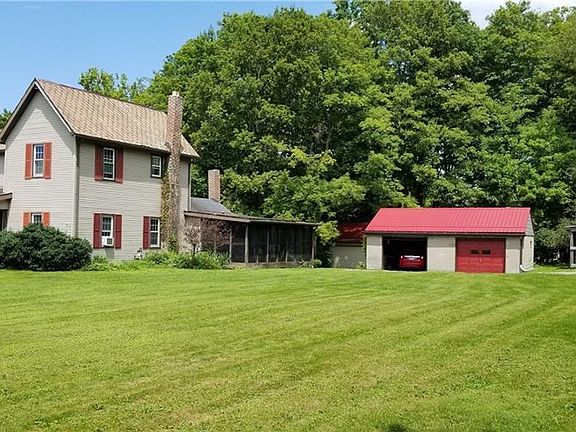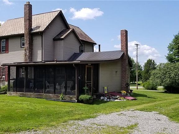 A farmhouse dream!! Situated on nearly 2 full acres with outbuilding garages!!! Needing a little TLC, this 3 bedroom, 2 full bath home has charm galore!! The kitchen was custom designed with rough hewn bass wood, reused slate flooring, and completed with the warmth of a top of the line Morso wood burning fireplace/stove. The solid stone highlights came out of Grove City Creek. A 7x20 enclosed screened porch allows for a delightful and private outdoor luncheon area. Large living room with solid wood flooring, first floor bedroom and bath room, media room with connections to the built-in home speaker system. 2 nice sized bedrooms on the second floor. A welcoming barn door entrance to the large full bathroom with its appealing custom sink. This home is full of character and has been loved by the same owners for over 40 years!