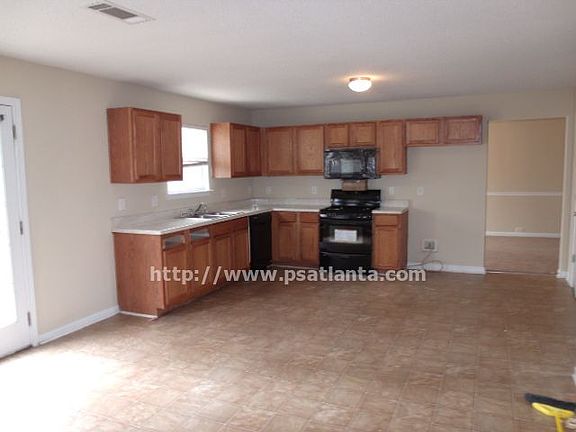 7455 Jumpers Trail Fairburn, GA 30213This home does not accept housing voucher 2 story home on an unfinished basement featuring 6 bedrooms and 3 baths located off of Campbellton Hwy in Fairburn! enter this home from a covered front rocking chair deck into a 2 story entry foyer located between a lower guest bedroom with full bath and separate formal living and dining room! Walk down the hallway past the entry to an unfinished basement into a large and open kitchen featuring all new black appliances with gas stove, refrigerator with icemaker, dishwasher, built-in microwave, dual sinks and plenty of cabinet space. The kitchen also features a large breakfast area and pantry and steps down into a grand family room featuring a gas starter fireplace, access to a back deck overlooking a wooded backyard and access to the 2 car front entry garage with remote openers. Atop the staircase on the second level features 4 spare bedrooms are all oversized and spacious featuring vaulted ceilings with deep closets, and share a hall bathroom. The master bedroom is enormous which can be used as well as a sitting area or a private retreat. The master bath features dual vanities, separate garden tub, stall shower with glass enclosure and a large walk-in closet. Built in 2005 3,506.00 sq.ft.
