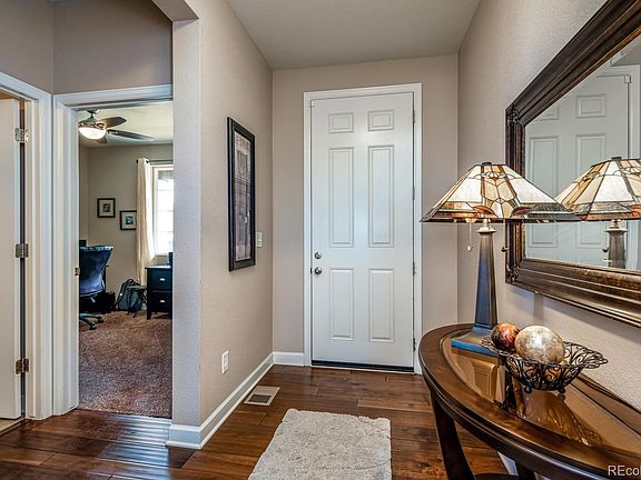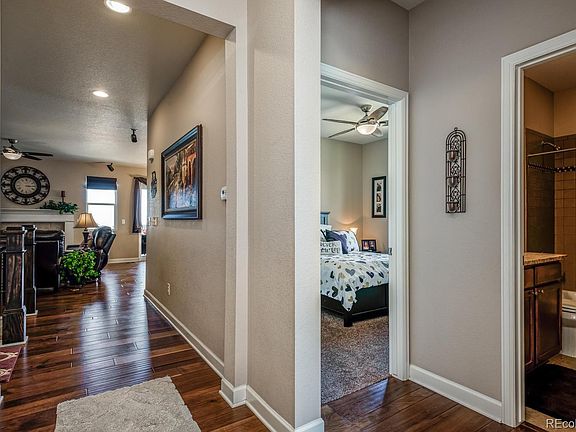 This is the home you have been waiting for. It truly is BETTER THAN NEW! It checks all the boxes. There was 75,482 in upgrades at the purchase and then the LARGE "after closing" expenses (another 42K) have already been taken care of (beautifully finished and permitted WALKOUT lower level, matching backyard shed/workshop, backyard landscaping, window treatments and custom interior paint)! These buyers picked this lot because it is south facing, is one of the larger lots in the neighborhood, taking advantage of the city lights and mountain vistas. The fully finished garage (with custom windows--letting streaming light become an important element even in this space) coupled with the custom built shed, creates room for all of the toys. This home features a Master Retreat Suite with a large walk-in closet. The beautiful hardwoods throughout, accent the open concept living / kitchen area complete with upgraded cabinets, hardware, and premium grade stainless steel appliances (gas range/microwave). The kitchen island will be the focal point where all can gather and the guests will gravitate to the amazing extended COVERED deck. Did I mention that there are 3 total covered areas, the welcoming front porch where sunsets will be presented nightly with unobstructed views, the upper deck and lower patio present 180 Degrees of Colorado's magnificent scenery-- also your daily backdrop--because we are situated on top of the hill!( so much better than looking over your neighbors backyard) The planned Richmond community has both tennis courts and swimming pools and is located with miles of hiking biking options.