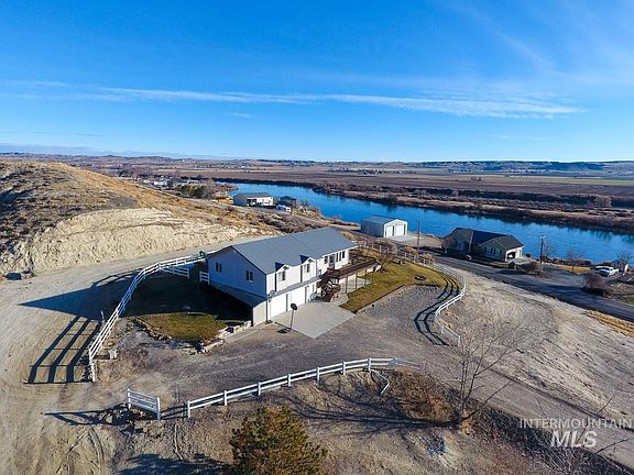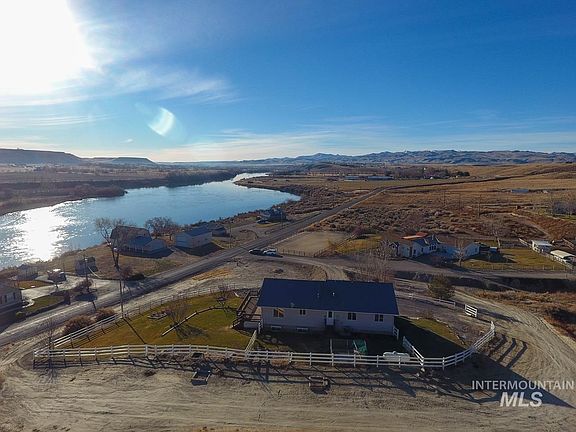 Beautiful view of the Snake River. 4 bedroom 2.5 bath, 2,662 sq ft home with beautiful wrap-around deck and vinyl fencing. Dry acres, house on one parcel selling w/ additional 1.137 acre parcel. Home is vacant and move-in ready. RV parking, dog kennel. No HOA, no CC&Rs.