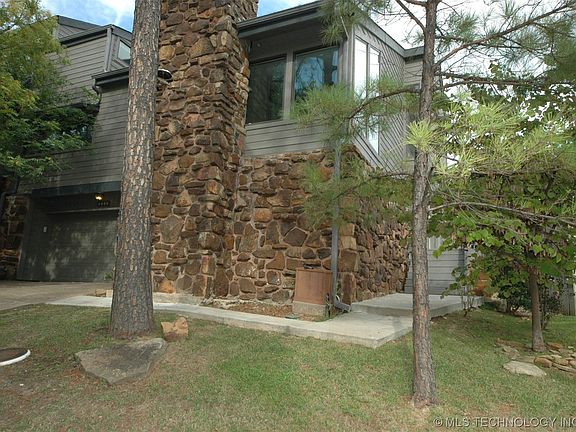 Corner-end Condo unit in desirable gated Raintree community. Townhome-style condo with an open layout with vaulted ceilings, marble, and gas fireplace. Ground level has oversized 2 car garage, office/flex room with storage. The first floor has a kitchen with marble countertops, newer appliances, a living room, a dining room (Oak bar included) half bath, large covered deck with Trex decking. Newer thermal windows, new carpet, and fresh paint throughout. Luxury vinyl wood flooring in kitchen and dining. The top floor has 3 bedrooms, 2 full baths, a laundry room, and a balcony off the master bedroom. Washer, Dryer, and refrigerator stay. New water heater. The neighborhood pool, clubhouse, and tennis court (pickleball) are private for HOA members only. Centrally located in the JENKS School District. Near St. Francis Hospital.