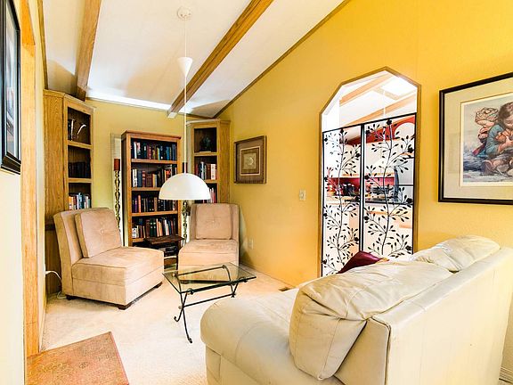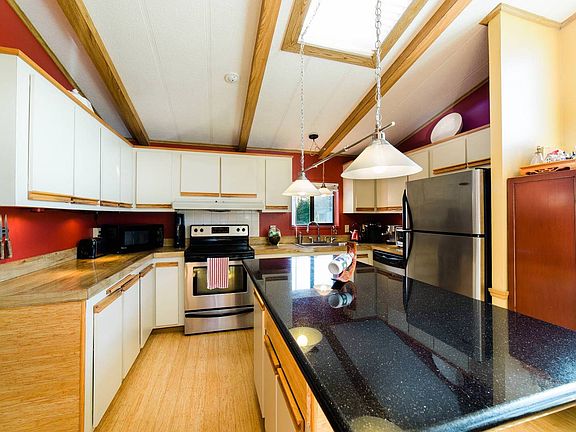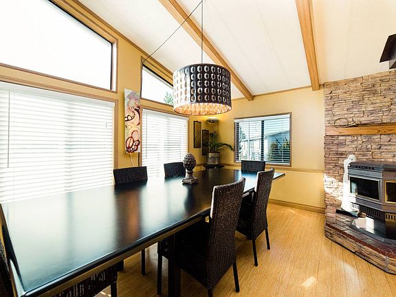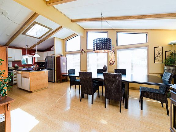 55+.Well maintained home on oversized lot. Newer roof, new heat/air pump Private space Top rated park.Home has spacious layout. Bamboo flooring in large kitchen/dining area. SSteel app,PelletStove, Living room with adjacent den area.Large master bedroom with master bath/jetted tub.Lots of light,Living area with view of garden. Covered deck outdoor barbecue/dining area.Laundry rm with w/d .Yard has apple, pear, fig and cherry trees plus Grape vines. A perfect garden setting. Lots of birds
